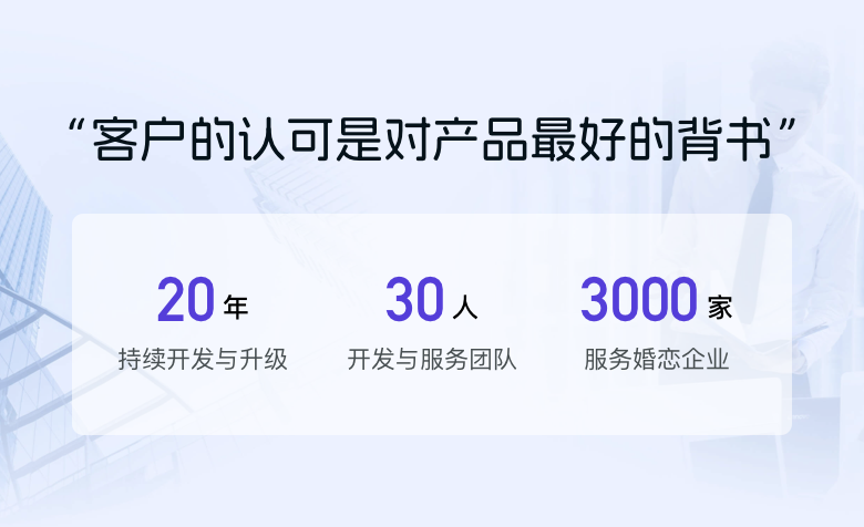 “使用163K这么久,最大的感受就是,他们提供的不仅仅仅是一套婚恋系统,在商业思维上给了我很多启发,分享了很多其他优秀同行的经验,真的感觉到他们是一个非常有温度、负责任、专业的团队。”